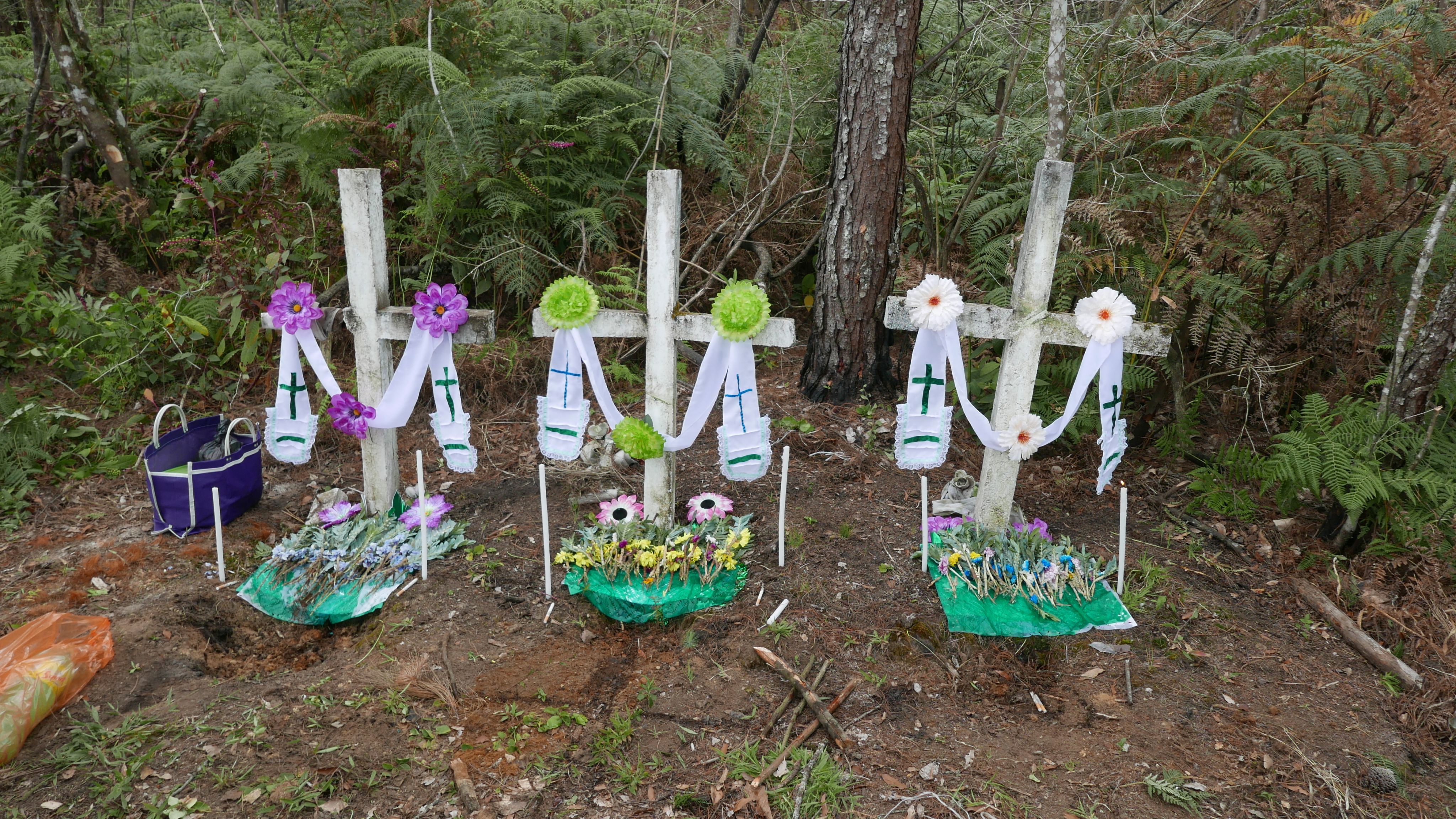 La dimensión sacrificial de esta fase se expresa, además de en la fatiga del recorrido, en los animales, que representan tanto un don de vida como el alimento de las entidades. Las tres cruces se envuelven en una tela blanca que alude al sudario de Cristo y sobre sus brazos se colocan tres gallos blancos, mientras que delante del altar se hace bailar al borrego blanco, que será liberado en la montaña al final del rito.