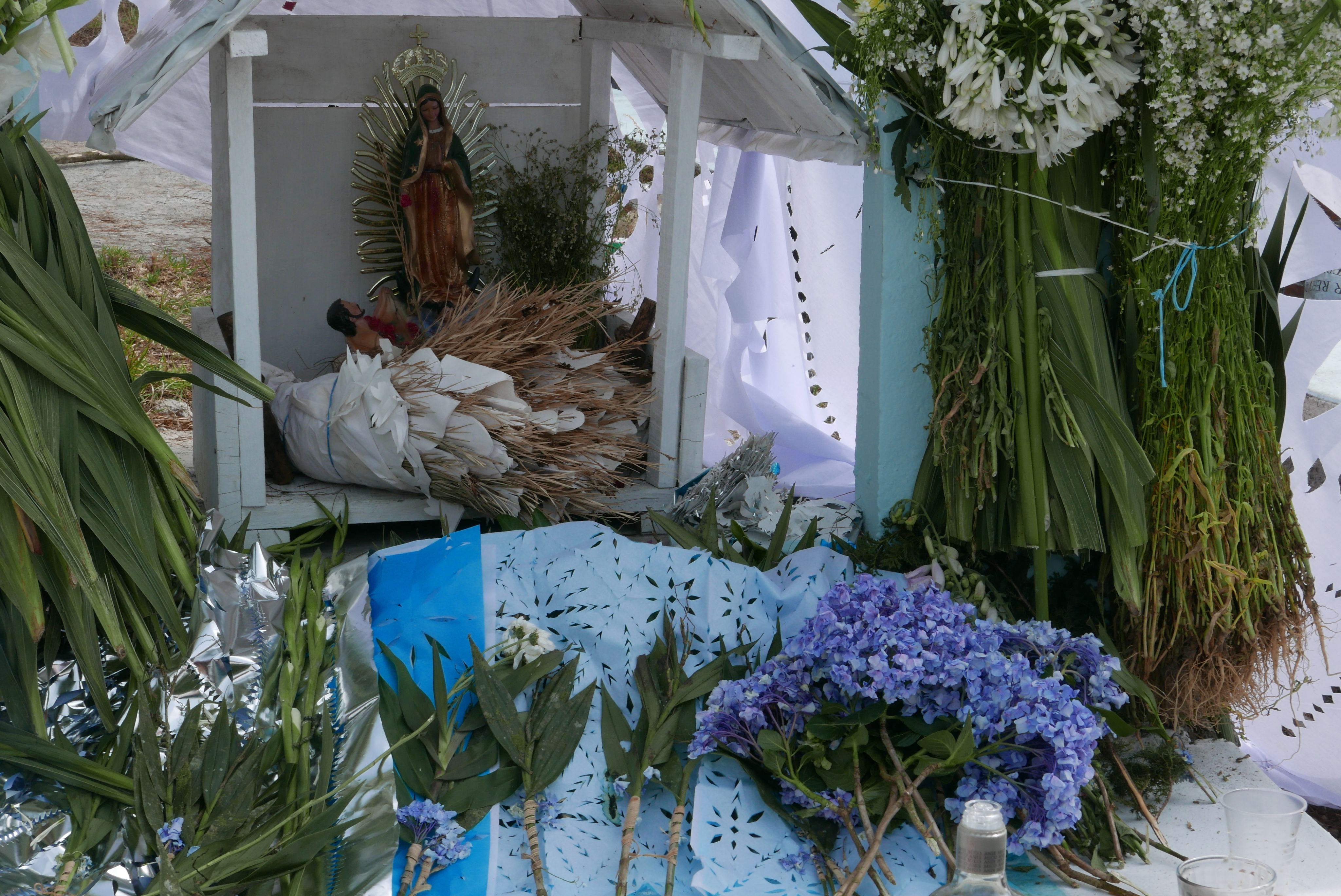 Eso [la tela blanca] es el significado de la crucifixión de Dios nuestro señor. Este es su significado de la Santa Cruz, porque Jesús así aparentó, con una tela en su cruz. Lo bajaron con una tela de la Santa Cruz, adonde Dios nuestro señor dio la vida, es lo que estamos llorando ahorita. Se le tiene que poner la tela, porque también si no se la llevan se enoja.
