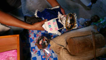 Los artefactos así bendecidos adquieren el poder de ser —manifestando la personalidad del espíritu con el que están asociados— y el poder de actuar —ejerciendo su influencia sobre los presentes—. En el altar del oratorio, las figuras de la tierra, la montaña y el agua, vestidas con ropa en miniatura, se conservan en una caja de madera, acompañadas de semillas de plantas cultivadas y pequeños dones.