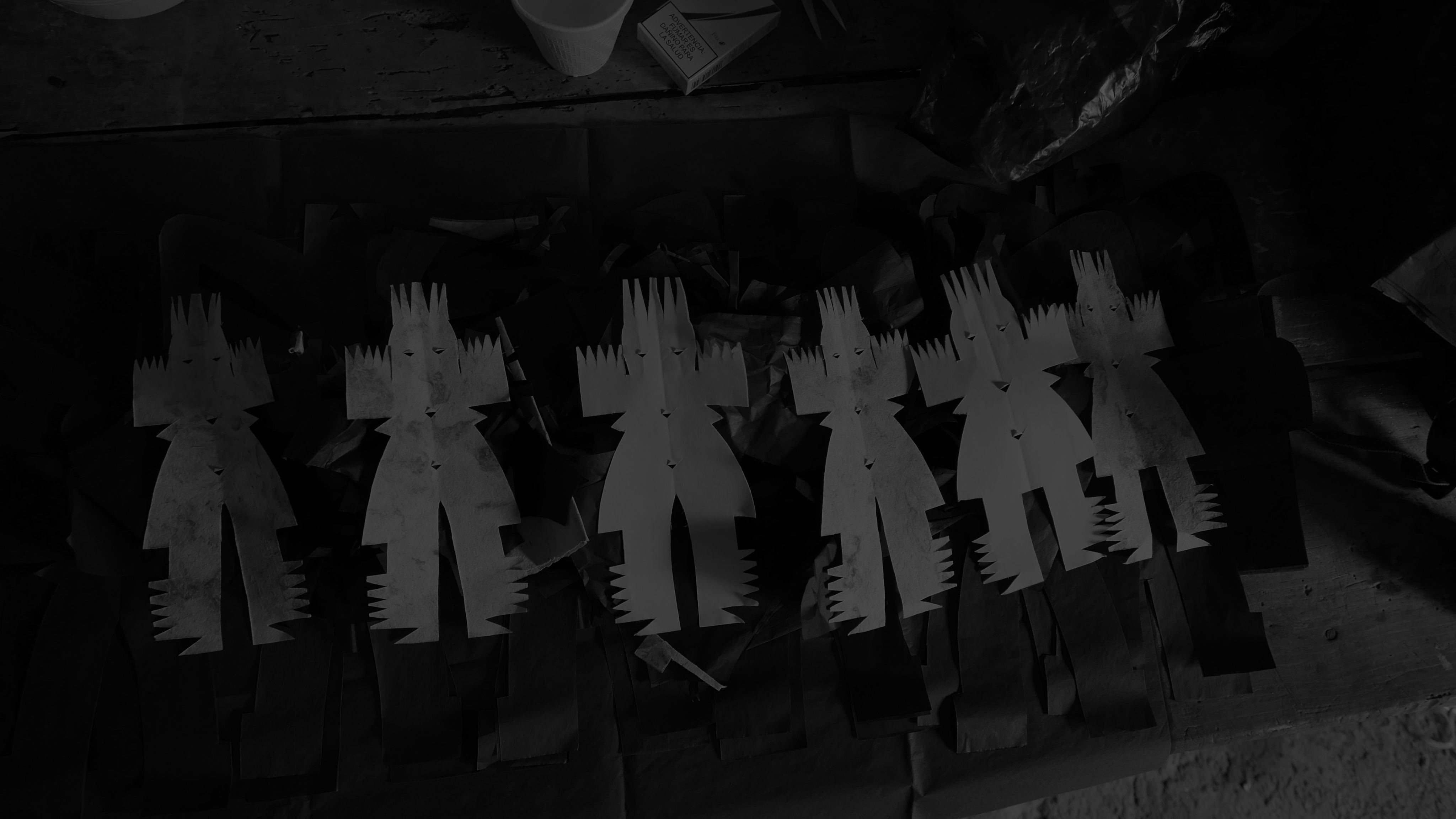 Figuras recortadas en papel utilizadas en el ritual como receptáculos temporales de entidades incorpóreas. Foto de Giulia Cantisani (2022)