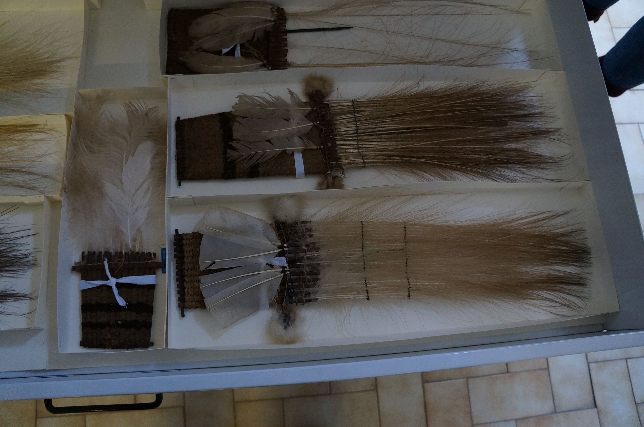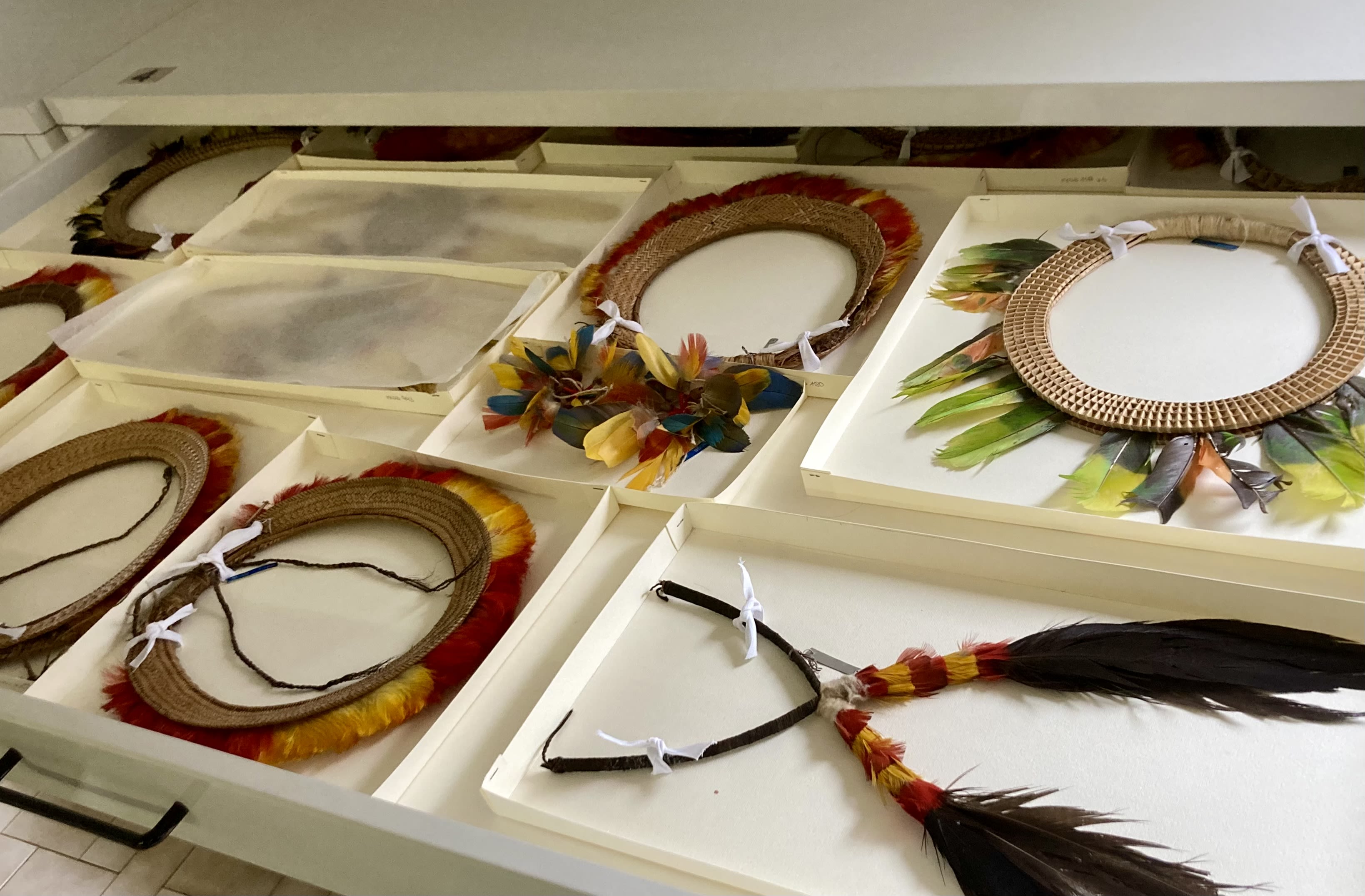 Plumes artefacts that are part of the ritual specialist’s headdress to be worn during traditional dances and ceremonies. Preserved at the Missionary Ethnological Museum of Colle Don Bosco, in the province of Asti (Italy). Personal archive of the authors, January 2020.