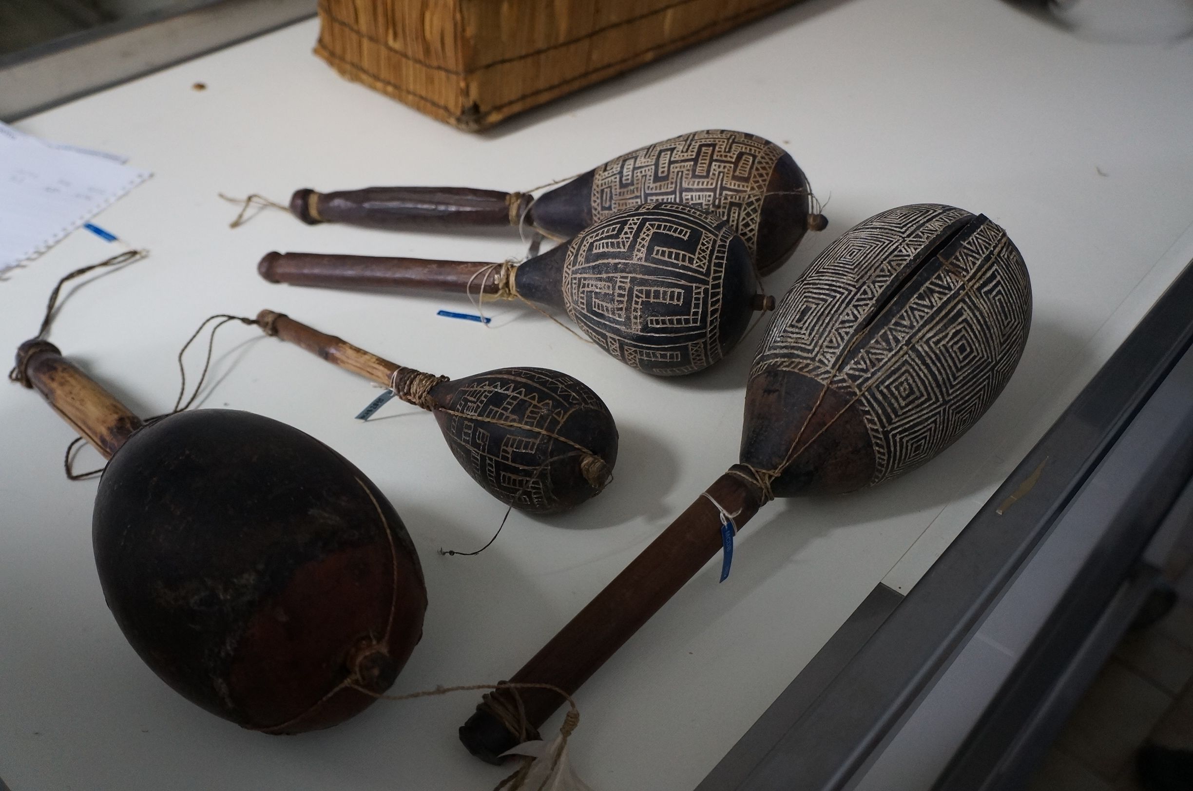 Shamanic maracas which are played during traditional dances and ceremonies. Preserved at the Missionary Ethnological Museum of Colle Don Bosco, in the province of Asti (Italy). Personal archive of the authors, January 2020.