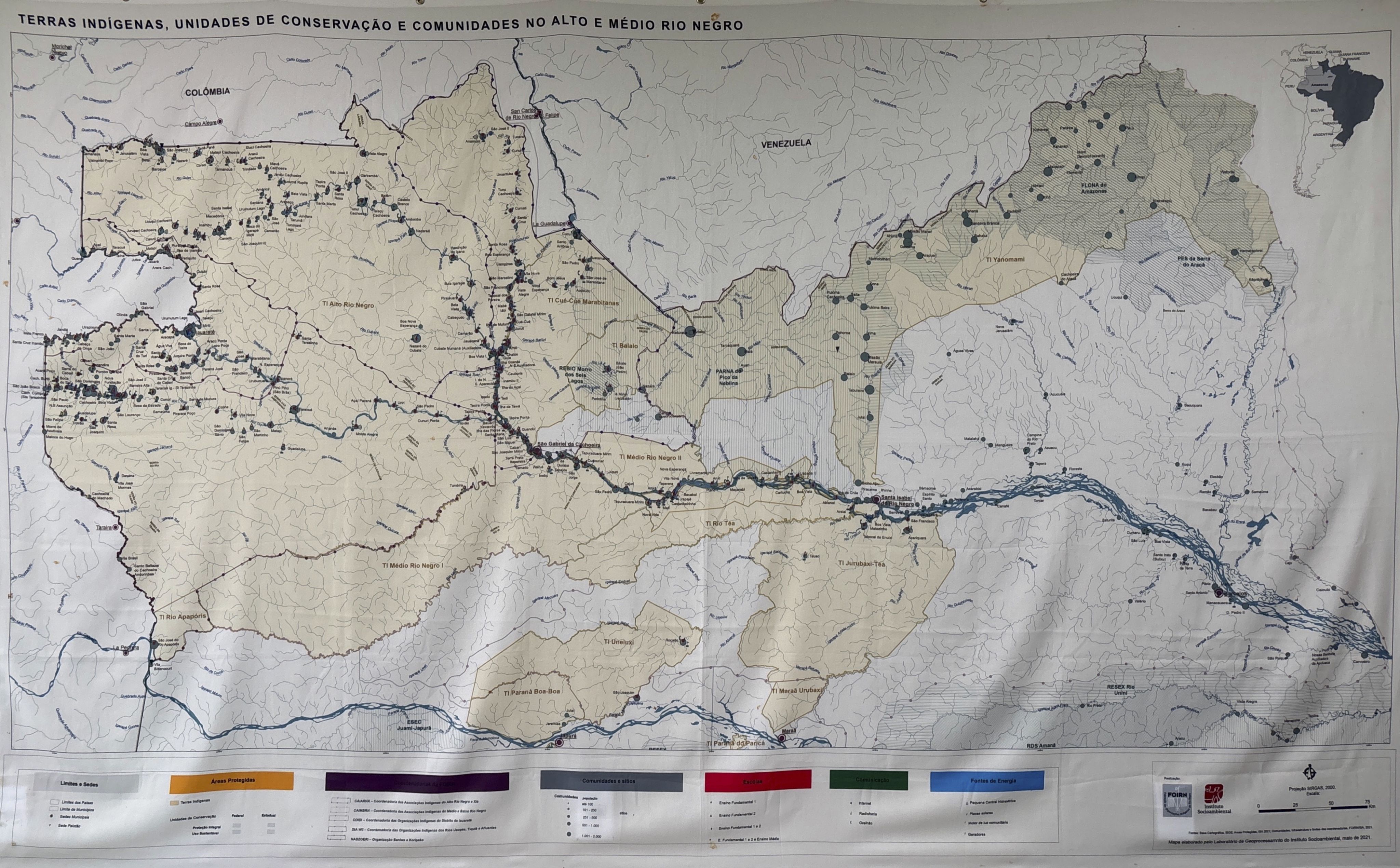 Geopolitical map of the Upper and Middle Rio Negro region showing Indigenous Lands, conservation units, and communities. Personal archive of the authors, August 2025.