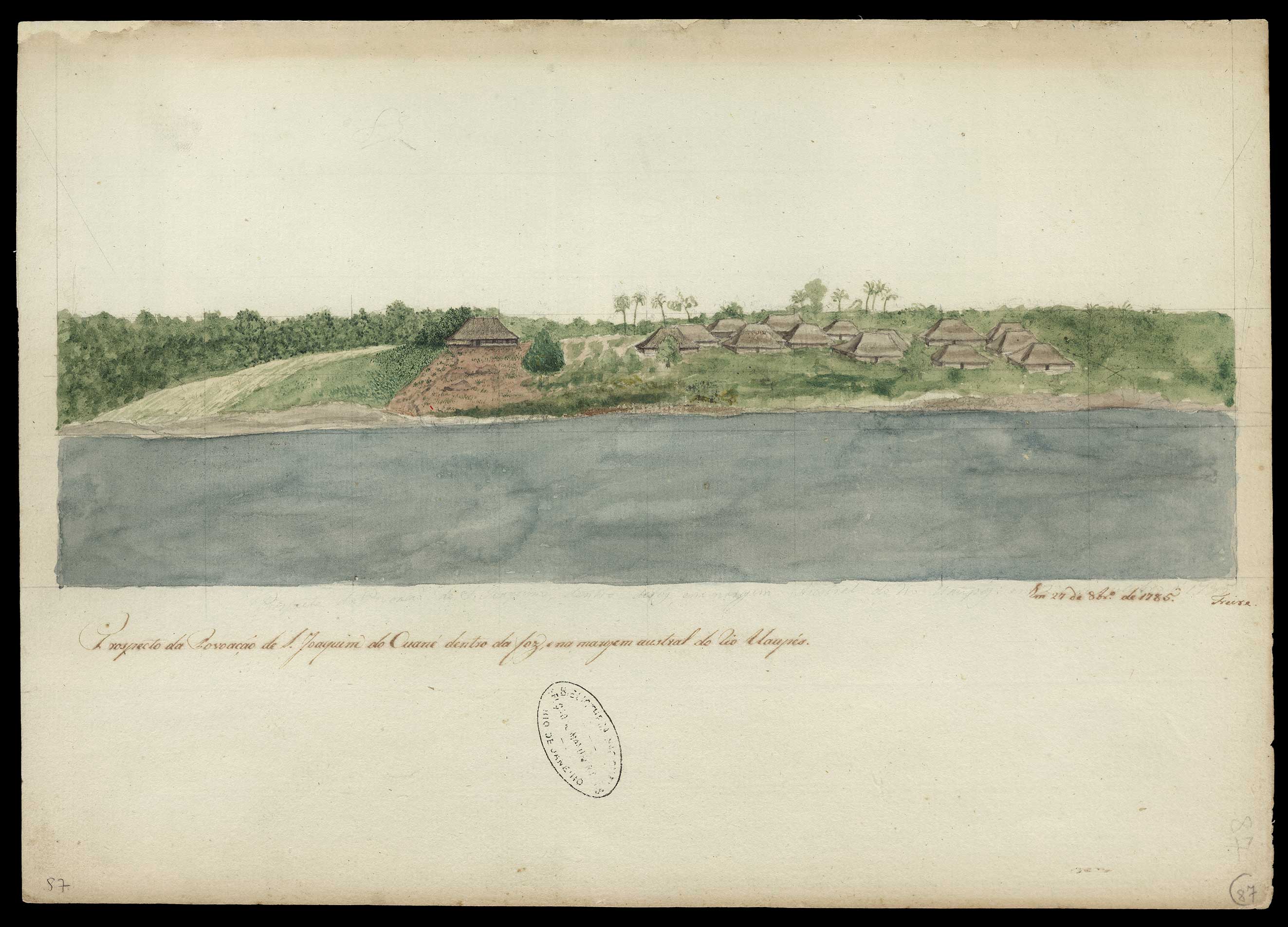 View of the village of São Joaquim do Cuané, on the banks of the Rio Uaupés. Drawing made during the Viagem Philosophica led by the Portuguese-Brazilian naturalist Alexandre Rodrigues Ferreira between 1783 and 1792. National Digital Library of Rio de Janeiro