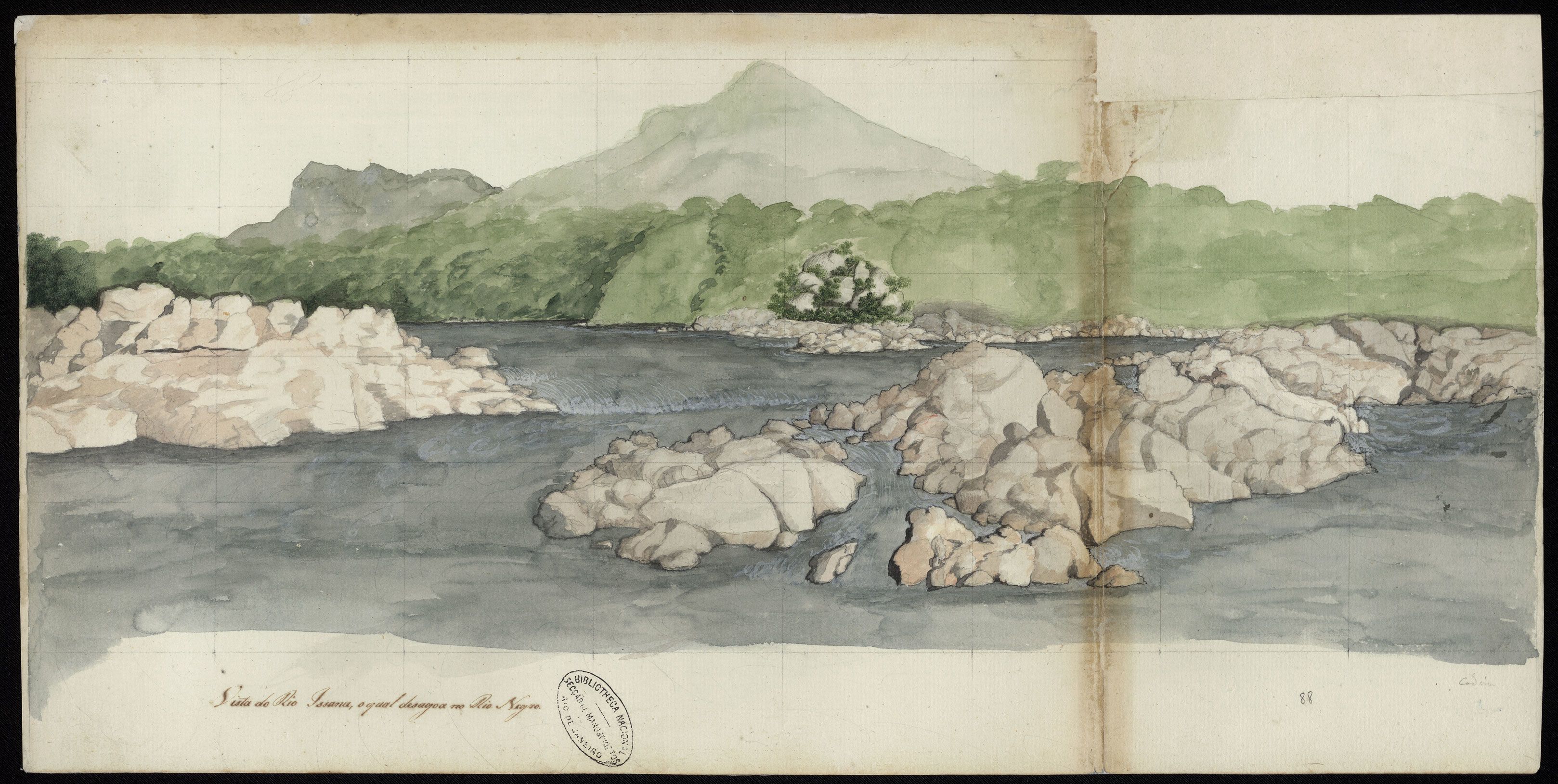 View of the Içana River. Drawing made during the Viagem Philosophica led by Portuguese-Brazilian naturalist Alexandre Rodrigues Ferreira between 1783 and 1792. National Digital Library of Rio de Janeiro.